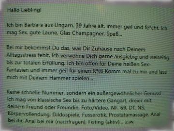 Erlebe die verführerische Welt der Erotik mit Barbara, unserer 39-jährigen Escort-Dame. Mit einer Größe von 165 cm beherrscht sie die Kunst der Verführung meisterlich. Ihre Spezialitäten, wie die betörende Anal-Massage, die lustvolle Busen-Erotik und sinnliche erotische Massagen, lassen Deine Fantasie Realität werden. Bereite Dich auf lustvolle Momente mit Facesitting und Fuß-Erotik vor. Barbara ist auch bereit, Dir die Freuden des Griechischen anzubieten. Die Intimität des Küssens und die Leidenschaft ihres Naturfranzösischs werden dich in eine Welt der Sinne entführen. Lass dich von ihr in die Tiefe Kehle der Lust entführen und genieße die Vollendung am Körper, um ein unvergessliches erotisch-romantisches Erlebnis zu haben. Tauche ein in Barbaras einzigartige Welt der Erotik auf Erotik.Land.